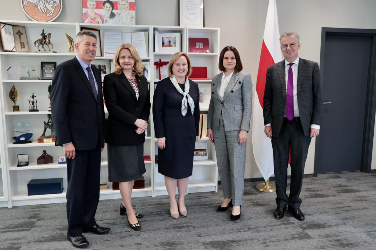 Посол Дэвис (в центре) активно поддерживала белорусскую оппозиционерку Светлану Тихановскую (вторая справа). Фото: x.com/usambbelarus