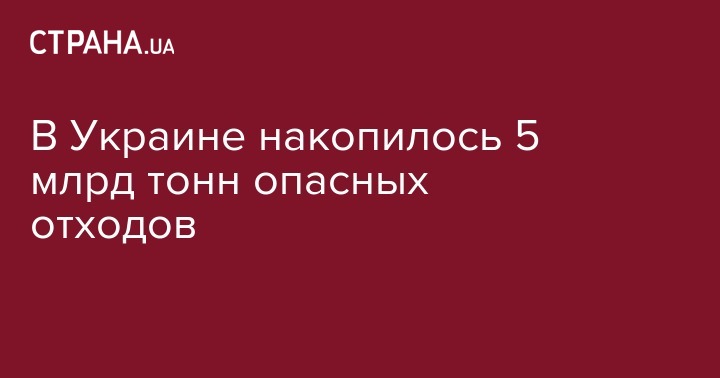 Пять миллиардов тонн опасных отходов накоплено в Украине, причем значительная часть из них хранится в ненадлежащем состоянии, создавая экологическую угрозу.