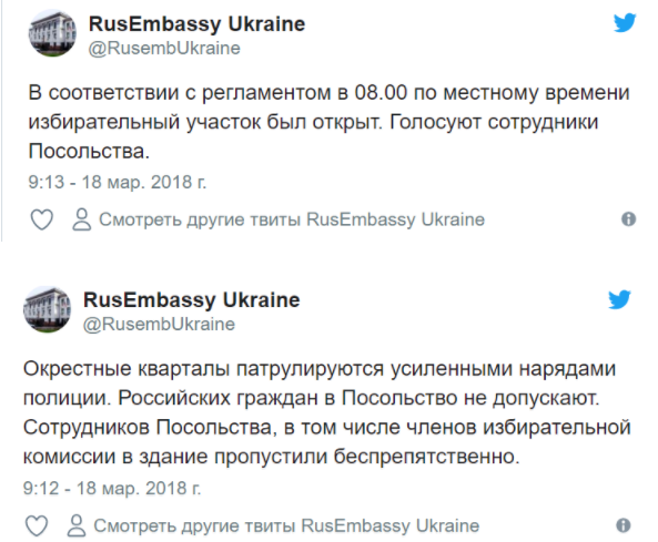 В российском посольстве в Киеве рассказали, что происходит на избирательном участке