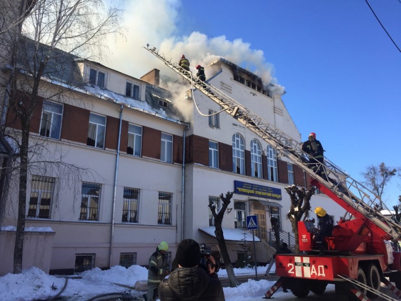 Сегодня в центре Черновцов загорелось здание транспортного колледжа, спасатели пока не могут потушить пожар.