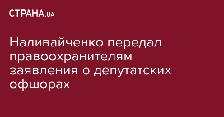 Лидер общественно-политического движения "Справедливость" Валентин Наливайченко передал в Национальное антикоррупционное бюро, Генеральную прокуратуру и Комитет по вопросам предотвращения и противодействия коррупции заявления о фактах коррупции со стороны ряда депутатов. Об этом он написал на своей странице в социальной сети Facebook.