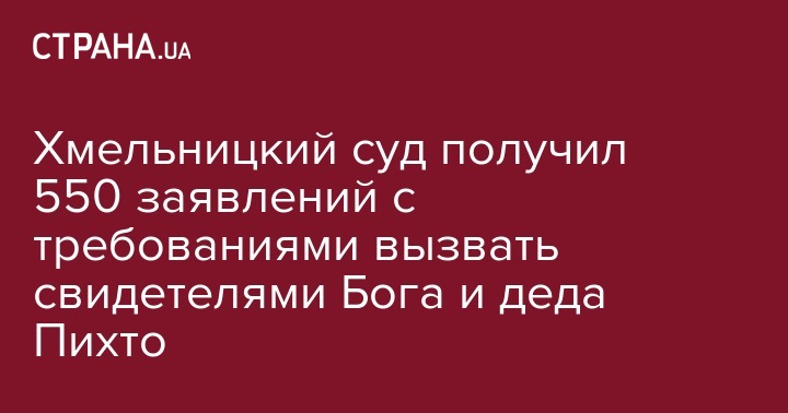 За прошлый год Хмельницкий городской районный суд получил от одного человека 550 заявлений с требованием вызвать в качестве свидетелей Бога и деда Пихто.