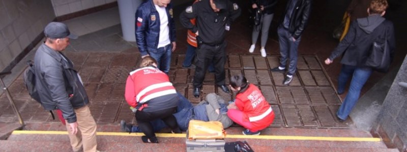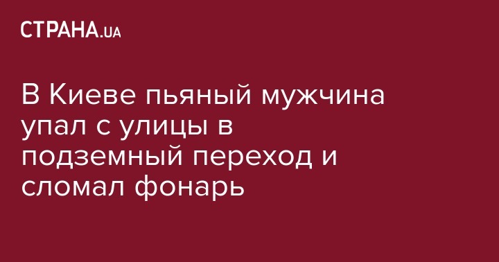 В Киеве пьяный мужчина упал с улицы в подземный переход и сломал фонарь