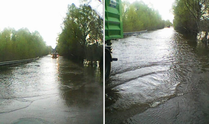 Вода затопила дорогу на 8-м километре а/д Т-25-21 в Сосницком районе, пока общая протяженность залитой участка составляет 150 м, толщина слоя воды до 25 см.