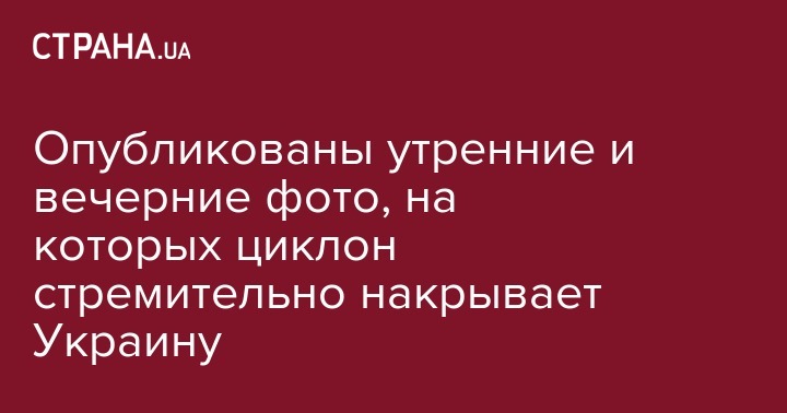 Опубликованы утренние и вечерние фото, на которых циклон стремительно накрывает Украину