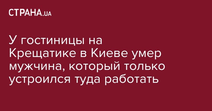 Тело умершего мужчины нашли в будке охраны по адресу Крещатик, 13/2. На место выехали врачи скорой помощи и полиция. Но врачам осталось только констатировать смерть. При умершем были документы, поэтому правоохранители выяснили его личность. Им оказался 33-летний мужчина, который накануне устроился на работу в отель.