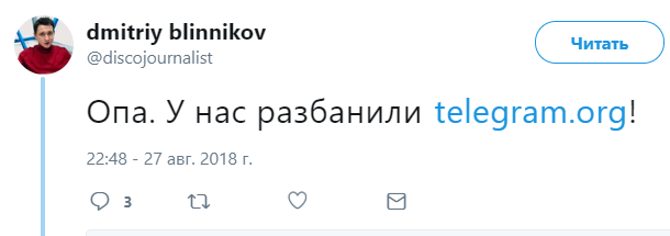 Одновременно с этой информацией в РФ появились сообщения, что Телеграм возобновил работу. По сообщению местных СМИ и россиян в Твиттере, снова заработали веб-адреса Telegram: web.telegram.org и t.me — по ним можно пользоваться мессенджером в браузере или скачать его официальный клиент. В том числе вновь начали открываться прямые ссылки на Telegram-каналы.