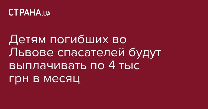 Детям погибших во Львове спасателей будут выплачивать по 4 тыс грн в месяц