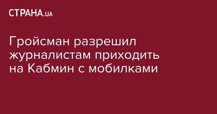 Премьер-министр Владимир Гройсман разрешил журналистам приходить на заседания Кабмина с мобильными телефонами. Об этом на своей странице в социальной сети Facebook сообщил директор департамента информации и коммуникаций с общественностью секретариата Кабмина Дмитрий Столярчук.