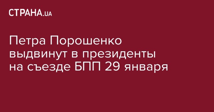 Главу государства Петра Порошенко выдвинут кандидатом в президенты Украины от БПП на съезде партии 29 января. Об этом рассказали источники "Страны" во фракции БПП. Дата, возможно, связана с годовщиной боя под Крутами.