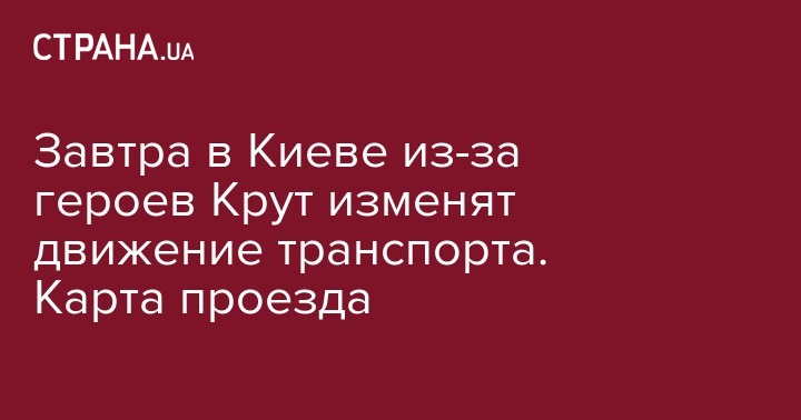 Завтра в Киеве из-за героев Крут изменят движение транспорта. Карта проезда