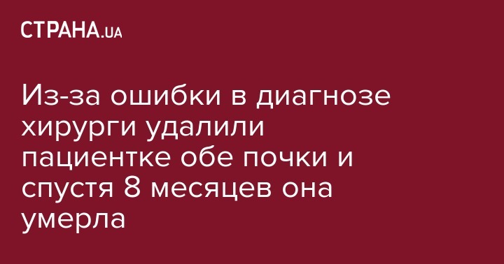 Из-за ошибки в диагнозе хирурги удалили пациентке обе почки и спустя 8 месяцев она умерла