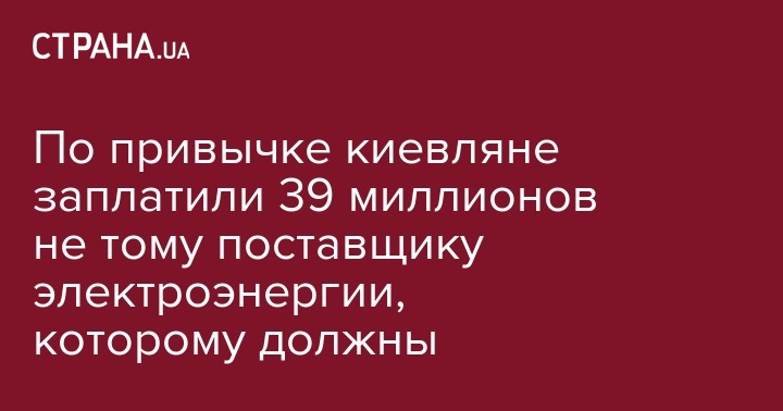 По привычке киевляне заплатили 39 миллионов не тому поставщику электроэнергии, которому должны