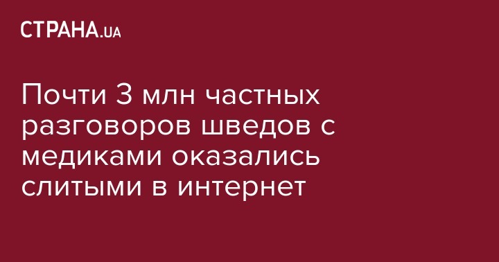 Почти 3 млн частных разговоров шведов с медиками оказались слитыми в интернет