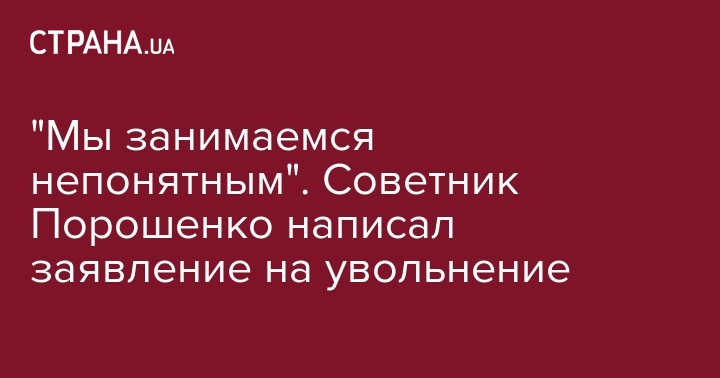 "Мы занимаемся непонятным". Советник Порошенко написал заявление на увольнение