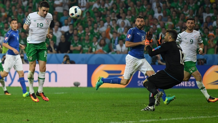 На 85-й минуте матча юркий 176-сантиметровый ирландский полузащитник Робби Брэди сумел оставить не у дел всех великанов защиты Италии и точным ударом головой после передачи Хулагана вывел свою команду в следующий этап Евро-2016.
