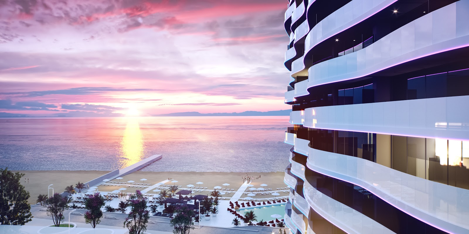 • хорошо обустроенный пляж с множеством развлекательных локаций и красивой набережной со смотровой площадкой, вымощенной в граните, с установленными на ней столбами ночного освещения и удобными лавочками;