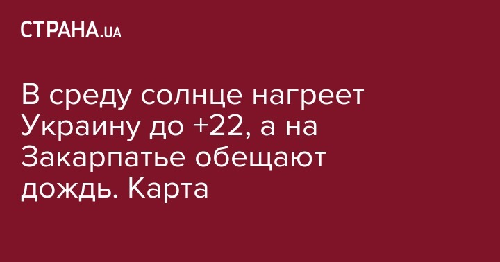В среду, 24 апреля, в Украине прогнозируют солнечную погоду без осадков. Исключением станет только Закарпатье, где может пройти небольшой дождь. Об этом сообщает Укргидрометцентр.