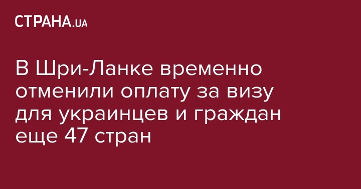 С 1 августа Шри-Ланка отменила оплату за одномесячную визу для граждан 48 стран, в том числе и для украинцев. Виза, которую выдают в аэропорту, ранее стоила примерно $35. Возможна также подача соответствующей интернет-заявки на получение. Мера будет действовать в течение шести месяцев, начиная с 1 августа.
