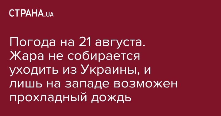 Погода на 21 августа. Жара не собирается уходить из Украины, и лишь на западе возможен прохладный дождь