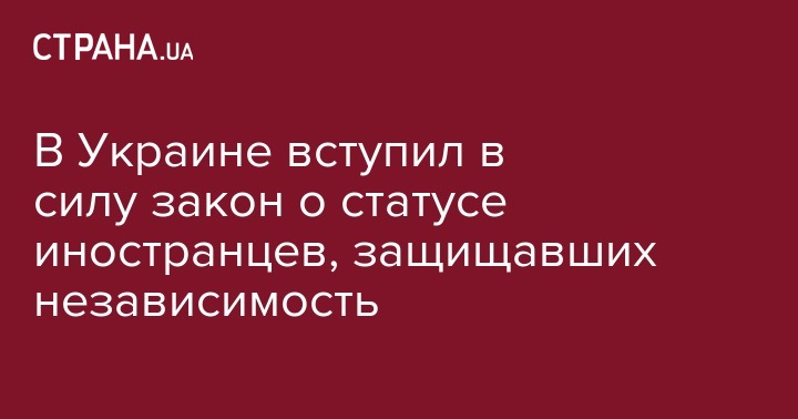 В Украине вступил в силу закон о статусе иностранцев, защищавших независимость