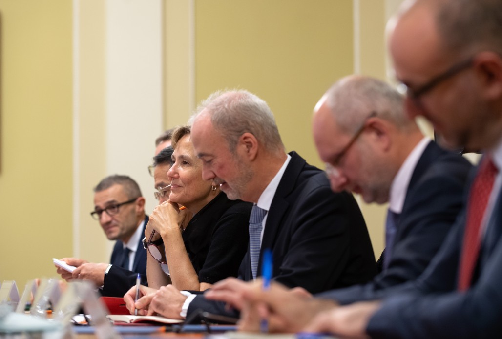 Особое внимание во время встречи было сосредоточено на борьбе с коррупцией. "Участники подробно обсудили судебную реформу, в частности имплементацию закона о деятельности органов судейского управления", - говорится в сообщении.
