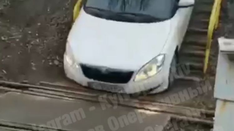 Неожиданный объезд через обычную лестницу на авто в Киеве попал на видео
