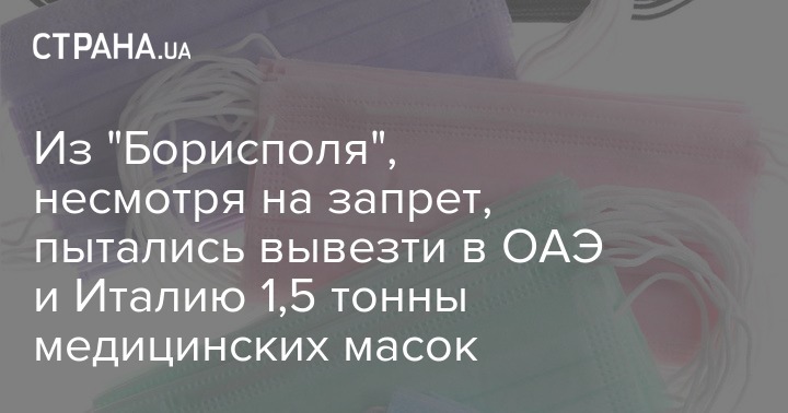 Из "Борисполя", несмотря на запрет, пытались вывезти в ОАЭ и Италию 1,5 тонны медицинских масок