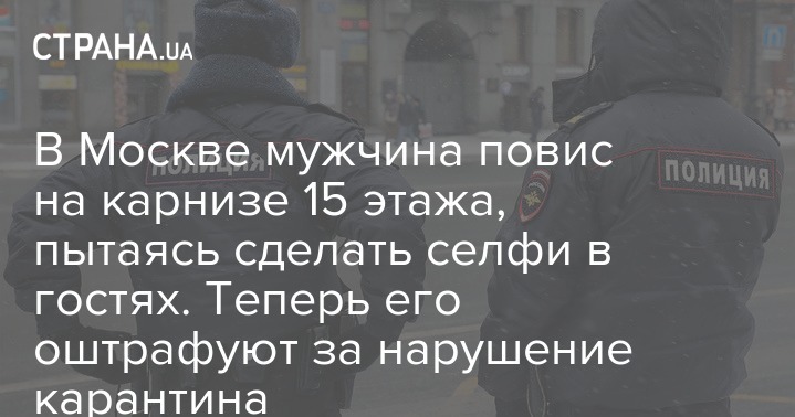 В Москве мужчина едва не выпал из окна на 15 этаже при попытке сделать селфи на подоконнике. Он не удержался и выпал, зацепившись рукавом за карниз. Его спасли полицейские, но теперь оштрафуют, поскольку он нарушил карантин и пришел в гости.