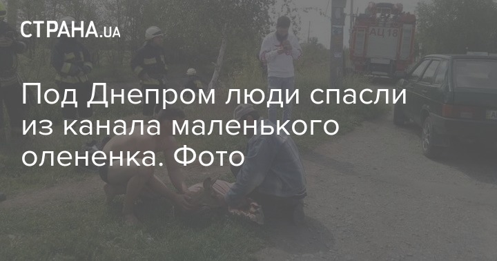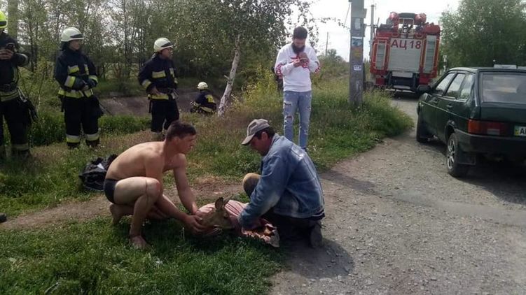 Под Днепром люди спасли из канала маленького олененка. Фото