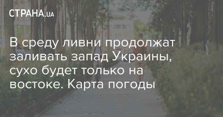 В среду, 24 июня, в Украине снова задержатся дожди. Осадков не ожидается только в Сумской, Харьковской, Донецкой и Луганской областях. А вот западные регионы будет снова активно заливать сильный дождь. Об этом сообщает Укргидрометцентр.