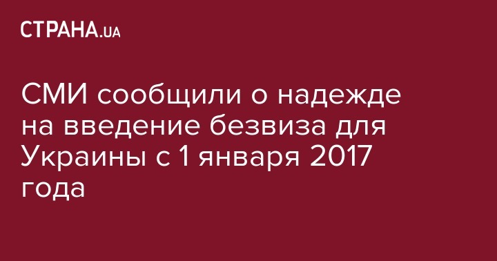 СМИ сообщили о надежде на введение безвиза для Украины с 1 января 2017 года