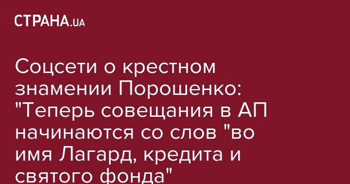 Соцсети о крестном знамении Порошенко: "Теперь совещания в АП начинаются со слов "во имя Лагард, кредита и святого фонда"