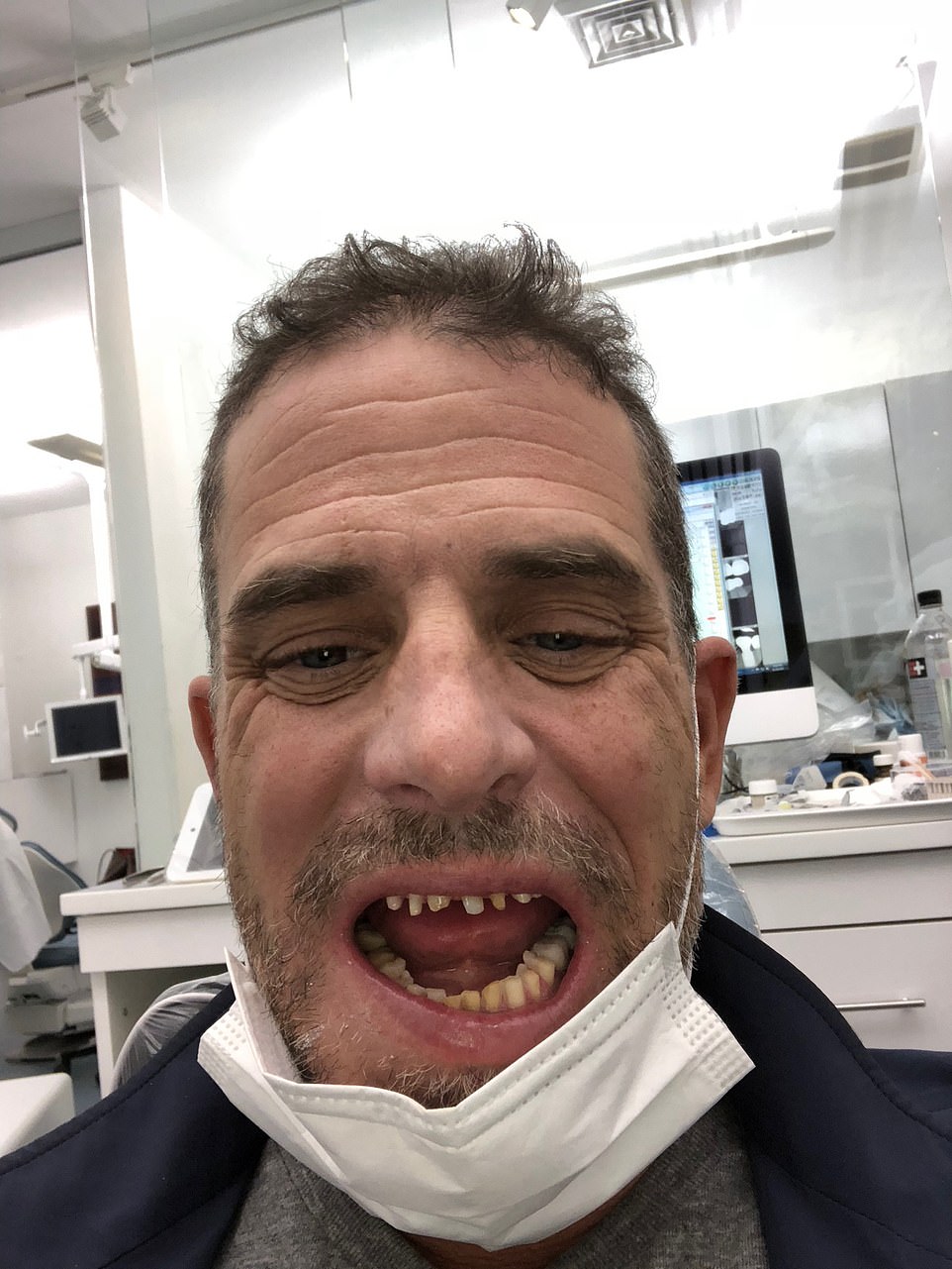 На фотографиях также изображен Хантер с потрескавшимися и сильно поврежденными зубами, характерными для последствий метамфетамина, когда он сидит в кресле дантиста, и есть  фотография, на которой он заметно лысеет.