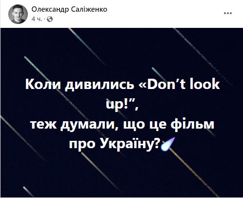"Когда смотрели Don't Look Up, тоже думали, что это фильм об Украине?" - спрашивает парламентский аналитик Александр Салиженко.
