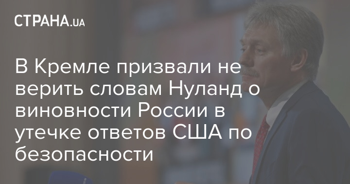 В Кремле призвали не верить словам Нуланд о виновности России в утечке ответов США по безопасности