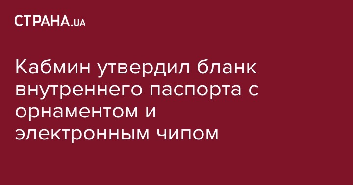 На сегодняшнем заседании правительство утвердило новый образец бланка паспорта гражданина Украины. Об этом идет речь в одобренном Кабмином проекте постановления "О внесении изменений в постановление Кабинета министров Украины от 25 марта 2015 года №302".