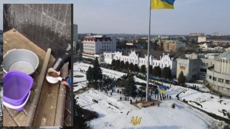 На кадрах видно, как жители набирают в ведра воду от растаявшего снега, который по водосточным трубам течет с крыш.