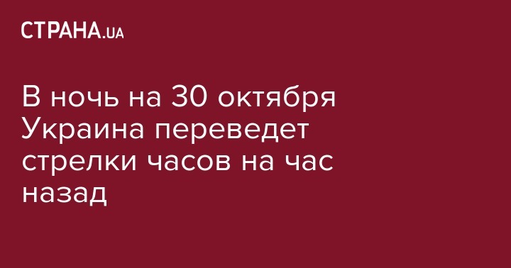 В ночь на 30 октября Украина переведет стрелки часов на час назад