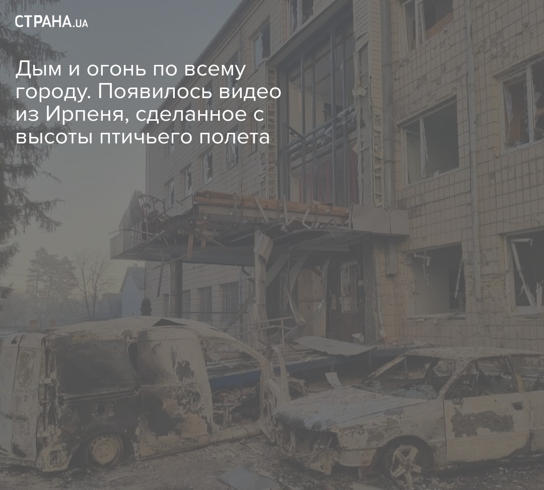 Дым и огонь по всему городу. Появилось видео из Ирпеня, сделанное с высоты птичьего полета