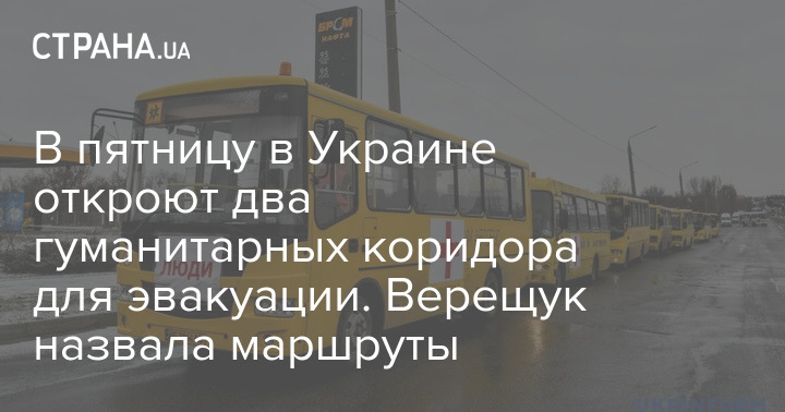 В пятницу в Украине откроют два гуманитарных коридора для эвакуации. Верещук назвала маршруты