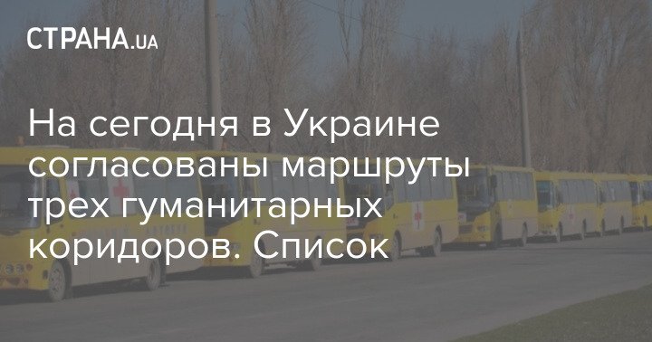 На сегодня в Украине согласованы маршруты трех гуманитарных коридоров. Список