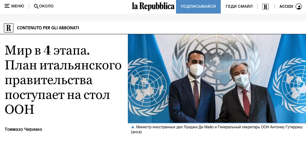 Быстрое вступление в ЕС и отказ от НАТО. Италия разработала план прекращения войны в Украине