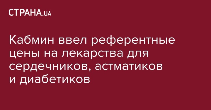 Кабмин одобрил постановление о введении с 1 января 2017 года референтных (средних) цен на лекарства от сердечнососудистых заболеваний, диабета и бронхиальной астмы. Об этом сообщает "Интерфакс Украина".
