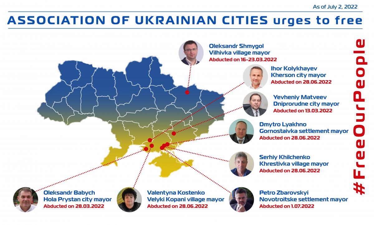 В плену ВС РФ находятся восеь голов поселков, городов и сел Украины. Фото: Facebook