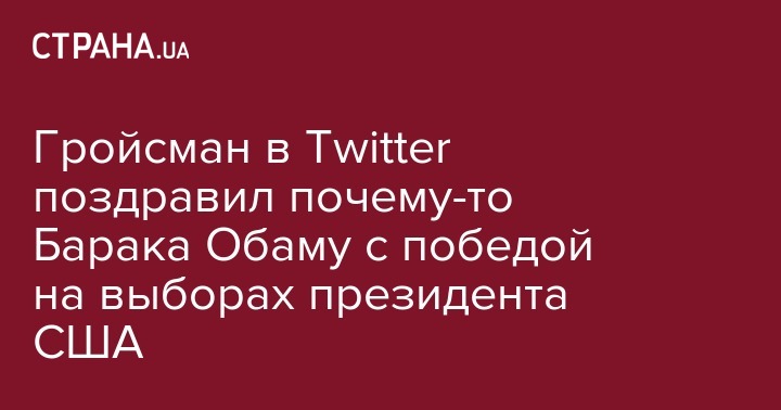 Гройсман в Twitter поздравил почему-то Барака Обаму с победой на выборах президента США