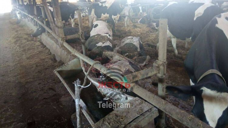 На кадрах можно заметить, что пострадали скот и сельскохозяйственная техника.