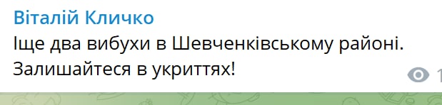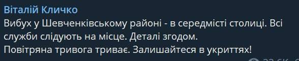 07:11 Кличко подтверждает ещё один прилет в Киеве в Шевченковском районе.
