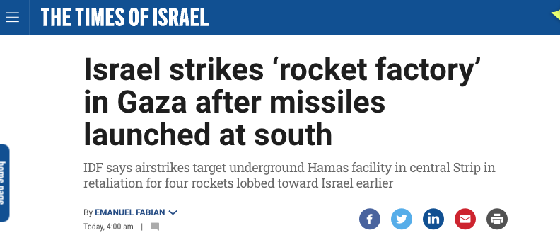 При этом Израиль заявляет, что ни одна из четырех ракет до его территории не долетела. Одна была сбита системой ПВО над приграничным городом, а остальные три сами не долетели и упали в районе Газы. Сообщений о пострадавших или повреждениях не поступало.