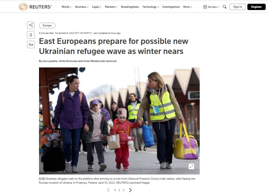 10:22 Из-за атак РФ на объекты энергетики в Украине Восточная Европа готовится к новой волне украинских беженцев с приближением зимы, пишет Reuters.